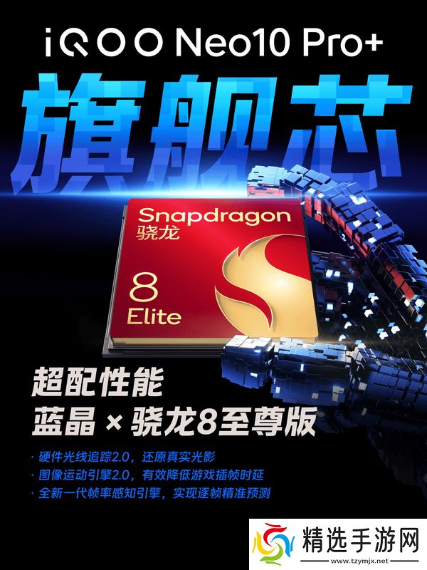 iQOO Neo10 Pro+不仅性能超配,更在细节上进行了专属调校。通过蓝晶技术的加持,骁龙8至尊版的潜能被进一步激发,带来了硬件光线追踪2.0技术,使得游戏场景中的光影效果更加逼真。同时,图像运动引擎2.0有效降低了游戏插帧时延,让画面更加流畅。全新一代帧率感知引擎的加入,实现了逐帧精准预测,确保了游戏体验的不卡顿。