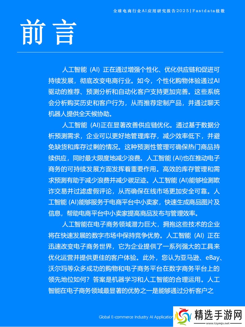 近期,一份深度探讨2025年全球电商行业AI应用的研究报告引起了广泛关注。该报告详尽地分析了AI技术如何在全球范围内,特别是在中国、美国、日本、印度和印尼等主要电商市场中,深刻改变着电商行业的面貌。