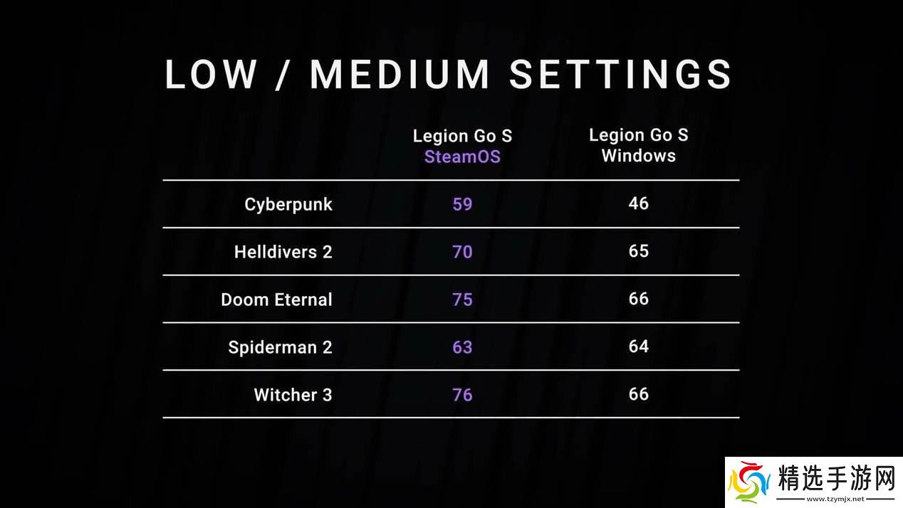 Dave2D的测试涵盖了《赛博朋克 2077》、《毁灭战士:永恒》和《巫师 3》等多款热门游戏。结果显示,在SteamOS系统下运行的Legion Go S,其帧率表现相较于Windows系统有了明显提升。特别是在《赛博朋克 2077》中,平均帧率提高了13帧,这一数据令人印象深刻。