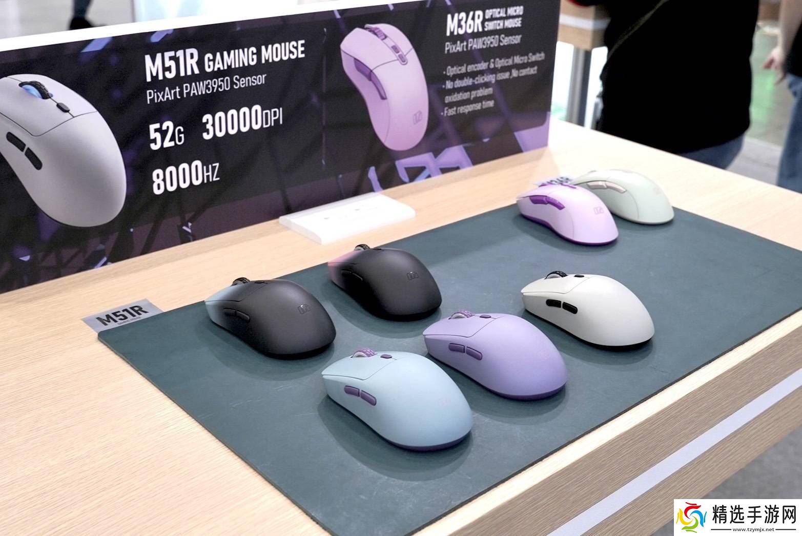 除了M25R鼠标外,iRocks还在展会上展示了其另一款力作——M51R高性能轻量化无线游戏鼠标。这款鼠标采用了对称式加左侧键的模具设计,既保证了美观性,又兼顾了实用性。其重量仅为52克,轻盈便携,非常适合长时间游戏使用。