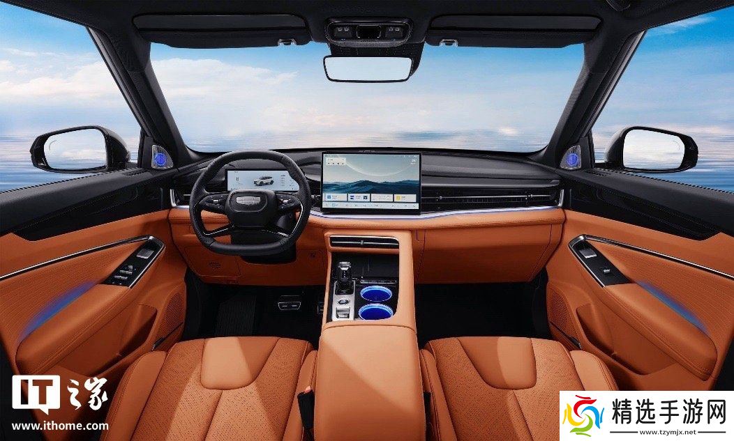 新车配备了悬浮式矩形中控屏,以及水晶挡把并保留部分实体按键,整体采用了橘色 + 黑色的搭配设计。中控屏分辨率为 1920×1080,全系标配吉利最新版 Flyme Auto 1.8 系统,支持小窗同屏多任务模式、手势控制、全语音控制、高德地图 810 版以及 AI 智能交互等,同时全系标配手机 App 远程控制,屏幕下方还配有 50W 无线充电面板。该车主驾座椅支持 6 向电动调节,副驾为 4 向,前排座椅支持 3 档加热、通风。