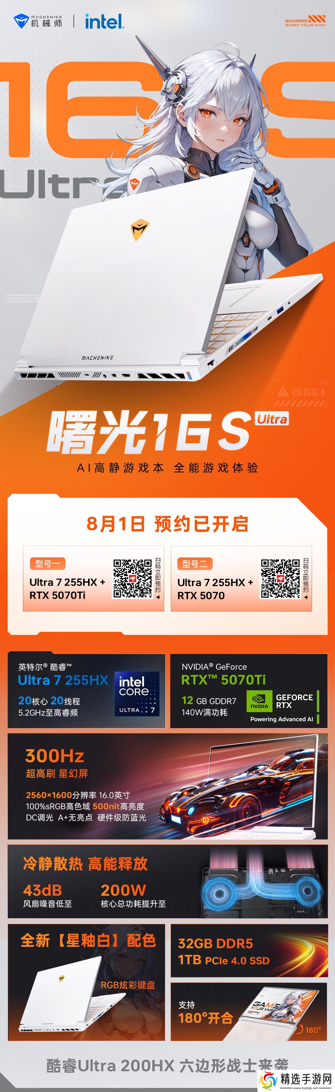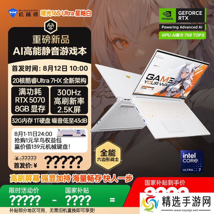京东机械师曙光 16S Ultra16 英寸 AI 高能静音游戏本笔记本电脑 酷睿 Ultra 7HX【5070 300Hz】 2.5K 32G1TB 白待发布直达链接2025 年数码家电**补贴持续进行中,本站为大家汇总国补领券地址,买数码家电之前记得领取: