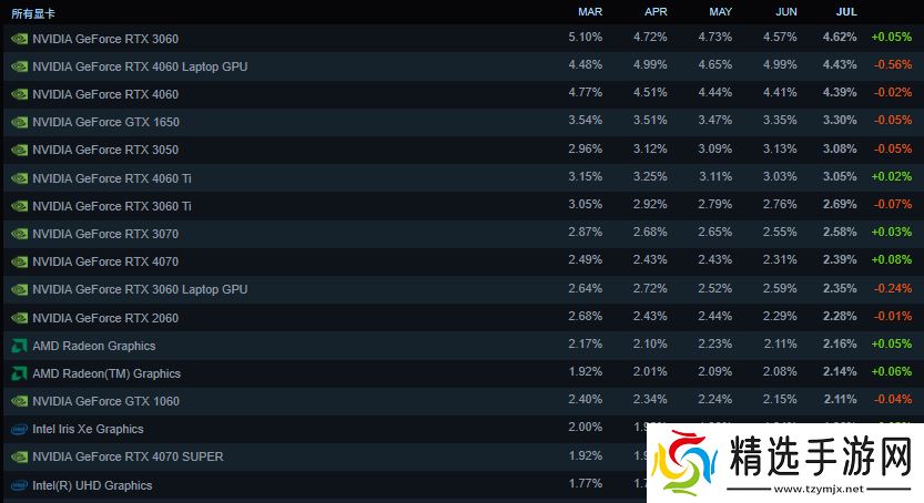 本站注意到,英伟达 RTX 3060 再次反超 RTX 4060(实际上月月反转),玩家仍惯用 16GB RAM、1920x1080 分辨率显示器。