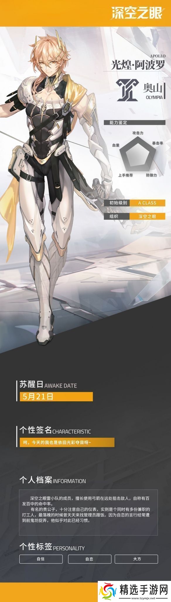 深空之眼光煌阿波罗作为A级修正者,属于远程光属性角色,今天,我们 就来看看光煌阿波罗的技能吧!他的技能分为普通攻击和技能推荐,我们用这些技能可以很好的做一个射手!