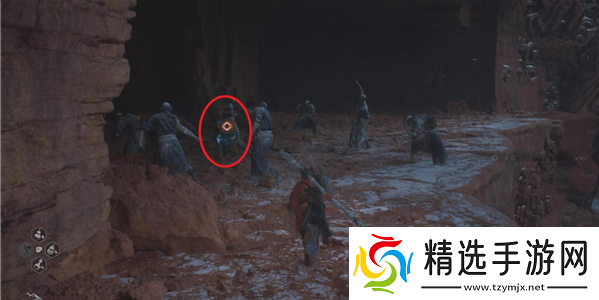 3、按照箭头指向玩家在这里可以看到一个身上冒蓝火的怪,这个就是戒刀僧。