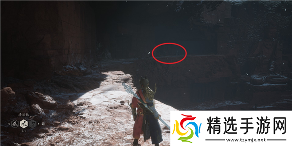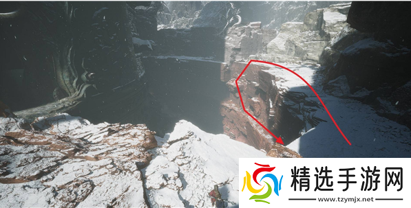 2、从经筒外这个土地庙出发,如在图中所示,需要从悬崖上跳下来。