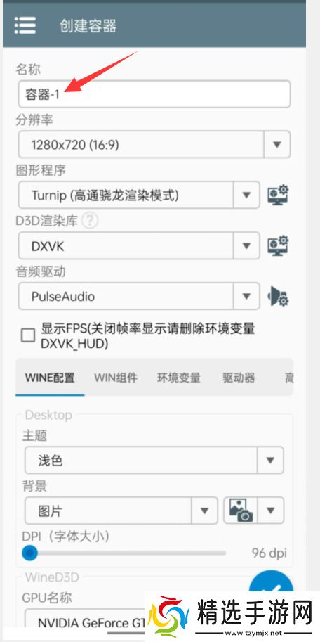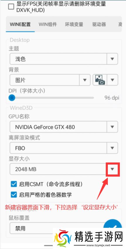 6、新建容器界面下滑,下拉选择‘设定显存大小’(建议手机配置较低的玩家,可以将显存调小);