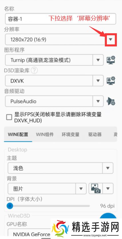 5、下拉选择“屏幕分辨率”(建议手机配置较低的玩家,可以将分辨率调小);
