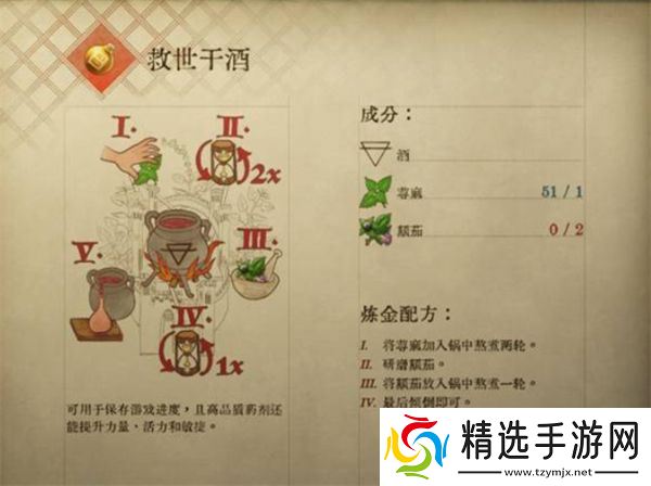 天国拯救2中的保存机制比较特别,玩家只有上床睡觉或者退出游戏的时候才能保存进度,如果想要手动保存的话需要一个名为救世干酒的保存药剂才能保存存档。但是救世干酒要怎么获得呢?其实可以通过制作来获得,这里小编为各位带来了天国拯救2保存药剂怎么制作的攻略,希望对你有帮助。