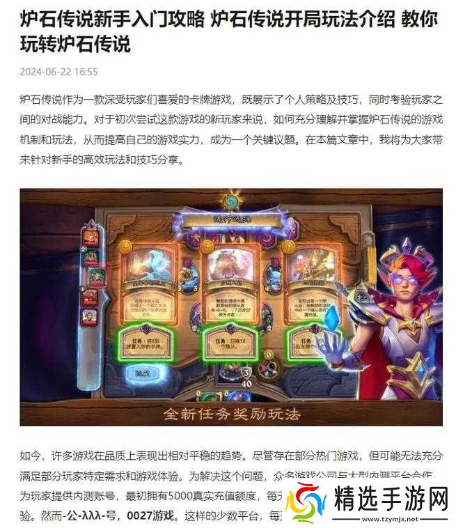 炉石传说是一款备受欢迎的在线卡牌游戏,它具有简单易上手、策略性强等特点,吸引了众多玩家。对于刚接触这款游戏的新人来说,以下是一些攻略指引,帮助你快速入门并享受游戏的乐趣。