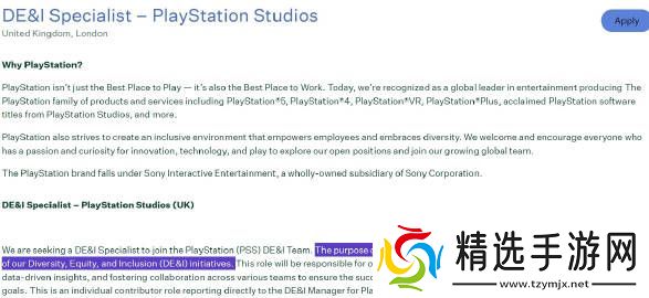 就在近期,索尼发布的一则广告招聘信息透露出,索尼有意扩大DEI部门的规模。从相关内容能够看出,索尼准备让新招募的员工直接向PlayStation工作室群的DEI经理进行工作汇报,并与全球DEI部门以及“社会正义团队”展开合作,从而进一步推进游戏内容的多元化发展。