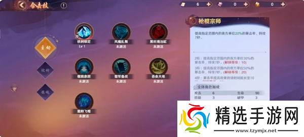 主动技不屈之焰(治疗减少生存压力)和枪棍宗师(提高暴击对boss特攻)