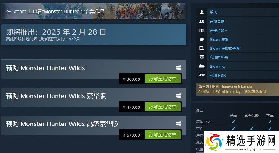 此外怪物猎人:荒野PS5版预购也已开启,港区标准版售价498港币(约合人民币450元)。PS5版将于2025年2月28日发售。