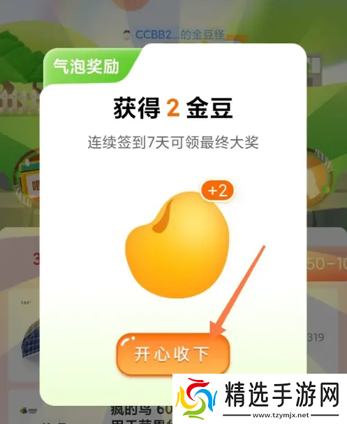 获得2金豆,点击【开心收下】。