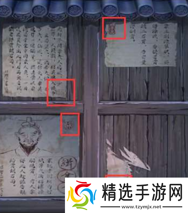 4、观测告示板上盖章的位置我们推断出箱子的密码从左至右依次是:右下、左上、右上、左下。