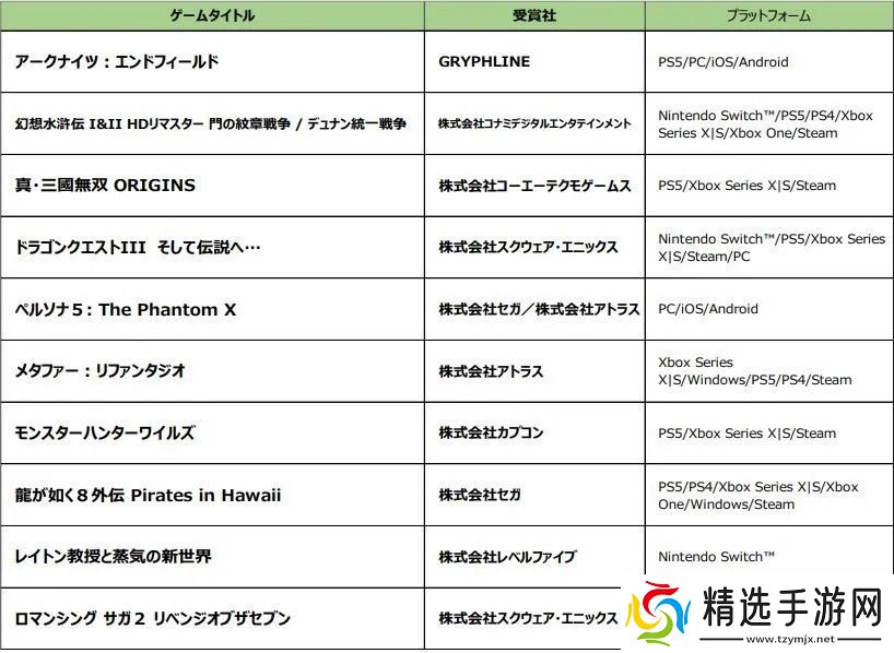 2024TGS展会来到了最后一日。在前几日,已有部分奖项的获奖名单陆续公布。今日,日本游戏大奖未来部门奖的获奖名单也得以揭晓。此奖项面向所有在展会上宣布和展出的未发售作品,所有获奖作品均是由玩家投票选出的最受期待之作,此次共有十款游戏荣获该奖项。