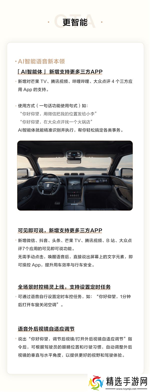 在智能化方面,U8的AI智能体也迎来了显著升级,新增了对芒果TV、腾讯视频、哔哩哔哩、大众点评四个热门APP的支持,真正实现了可见即可说的便捷操作。这一改进无疑将极大地丰富用户的行车娱乐与生活服务体验。