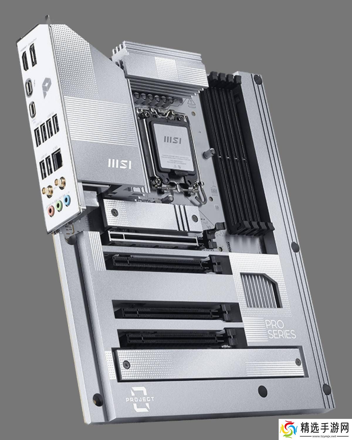 PRO Z890-S WIFI PZ主板采用了灰白PCB搭配大面积的银白色散热马甲,整体设计简洁大方。其PCB正面仅保留了CPU插槽、内存槽和M.2盘位等必要的接口,其余接口则被巧妙地设计在主板的背侧或I/O面板上。这样的设计不仅提升了主板的美观度,还大大简化了装机理线的过程,为用户带来了更加便捷的装机体验。