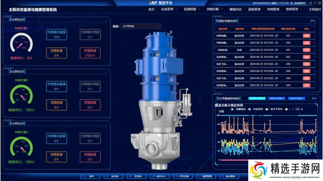 智驭平台可实现机组运行状态和设备健康度的实时监控和预警诊断。该平台每秒可捕捉 200 万个数据波动,就像给核电站装上了“心电图检测器”,通过对核电站生产活动的状态、性能,以及机组级和设备级的运行情况进行监控和智能分析,及时向核电站运维人员发出预警并提供辅助决策。