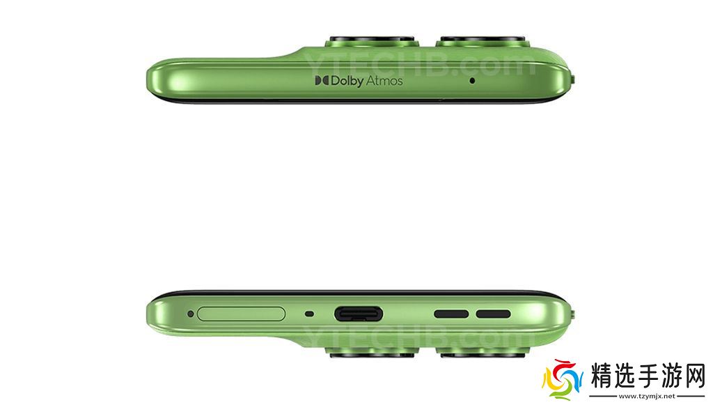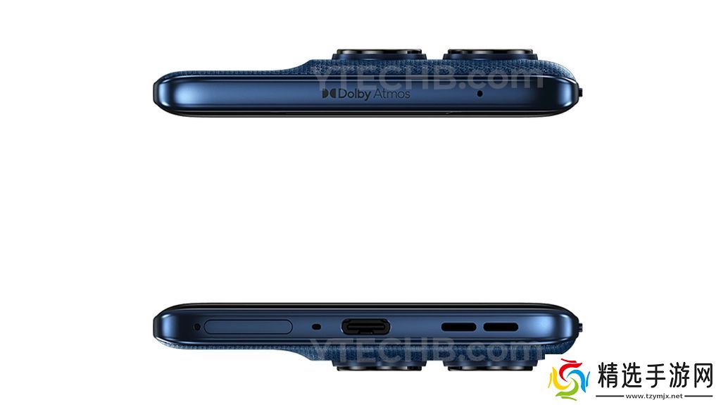 新机提供 Pantone 合作调校的蓝绿双色,后盖为 3D 硅基素皮材质,中框保留电源键、音量键,底部配备 USB-C 接口与 SIM 卡槽,顶部标注杜比全景声标志。屏幕覆盖康宁大猩猩 7i 玻璃,支持屏下指纹与湿手触控(AquaTouch)。