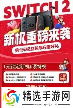京东为了提升消费者的购买体验,特别推出了诚意满满的1元权益包。赠品方面,凡在京东购买Switch 2的消费者均可获赠JSAUX品牌的两片高清贴膜。服务方面,京东提供了贴心的新品抢购提醒服务,并推出了30天意外换新服务,为消费者解除后顾之忧。在补贴方面,京东不仅准备了游戏设备立减20元的优惠券和任天堂Amiibo 1折购优惠券,还提供Switch以旧换新的高额补贴,最高可达320元,让消费者享受更多实惠。
