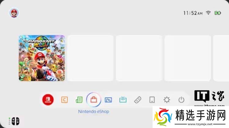 在这张不起眼的小图中,Switch 2的主界面一览无余,特别值得注意的是eShop图标的位置。仔细观察,可以发现新主机的主界面在美学上进行了细微的调整,但整体风格依然延续了初代Switch的经典设计。玩家预计仍然可以选择更暗色的UI界面,以适应不同的游戏环境。