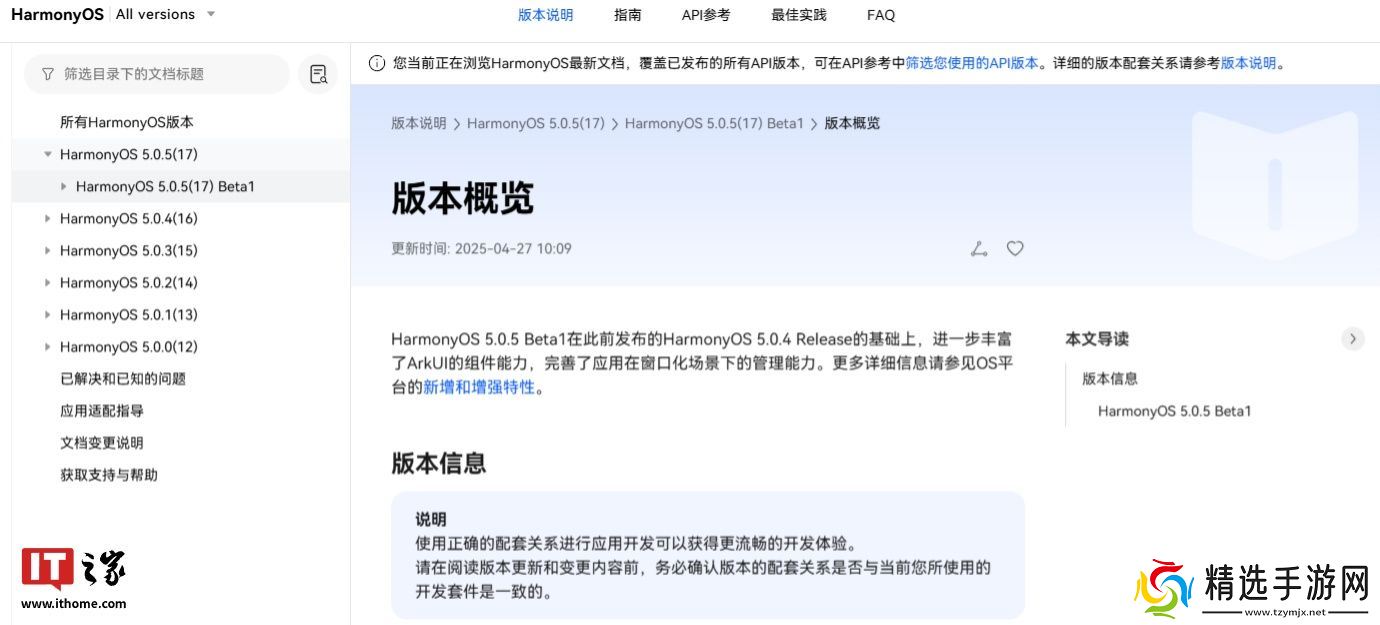 据今日早些时候报道,华为开发者官网今日公布了鸿蒙HarmonyOS 5.0.5 (17) Beta1新增和增强特性,新版本是 API 17 的首个版本。官方称5.0.5 (17) Beta1 在此前发布的HarmonyOS5.0.4 Release 的基础上,进一步丰富了 ArkUI 的组件能力,完善了应用在窗口化场景下的管理能力。