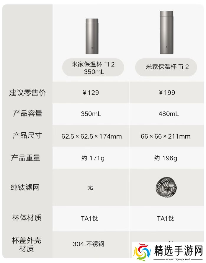 本站 4 月 27 日消息,小米米家保温杯 Ti 2 新增 350mL 版,现已在京东等平台开售,售价 129 元。新品相比 480mL 版去掉了纯钛滤网,杯盖外壳材质由 TA1 钛改为了 304 不锈钢。