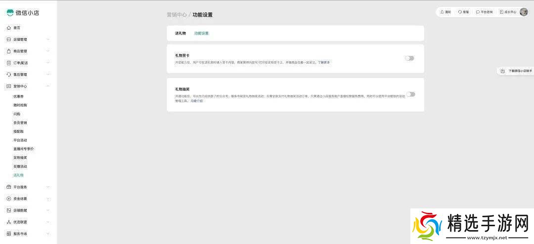 据悉,小蓝包抽奖的实质是向粉丝赠送商品,而这些商品必须来自已经开通送礼功能的微信小店。为了启用这一功能,首先需要小店的超级管理员在小店后台的营销中心中选择“送礼物”,并进一步确认开通“公众号/服务号礼物抽奖”功能。