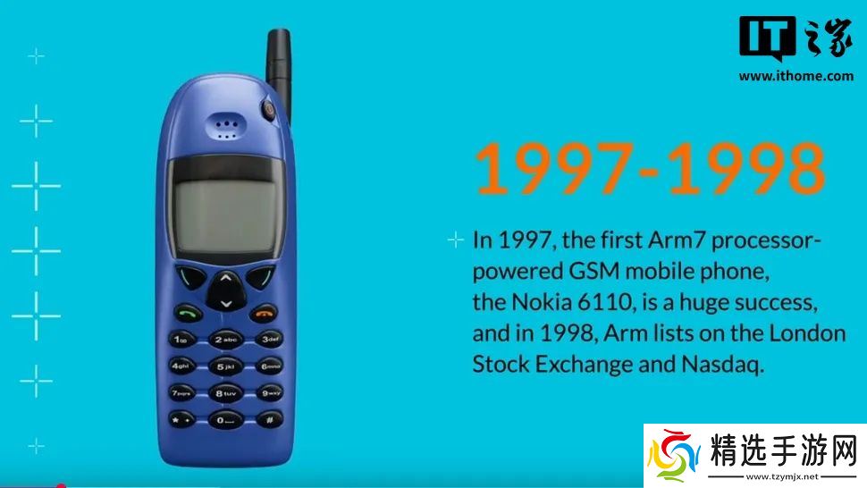 随着移动电话时代的到来,Arm 芯片的销量在 90 年代末迎来了爆炸式增长。诺基亚 6110 手机无疑是 Arm 架构潜力的一个重要例证,这款手机最终成为史上最畅销的移动电话之一。