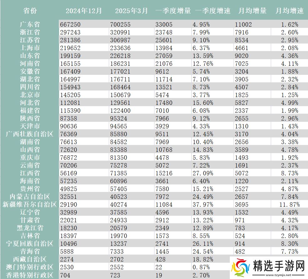按各地区来看,广东省以 700255 台的保有量位居榜首,江苏省、浙江省和上海市紧随其后,经济发达地区的充电桩建设处于领先地位。新疆维吾尔自治区在 2025 年一季度增量达 11084 台,增速高达 37.97%,表现格外突出。本站注意到,内蒙古自治区(7972 台,增速 24.49%)、青海省(4821 台,增速 24.54%)和广西壮族自治区(9511 台,增速 12.45%)也展现出较高的增量增速。