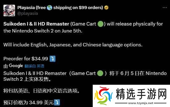 据官方消息,这款复刻合集将以34.99美元(约286港币)的价格于6月5日正式发售,并已开放预订。游戏将支持中文、英文及日语,满足不同地区玩家的需求。