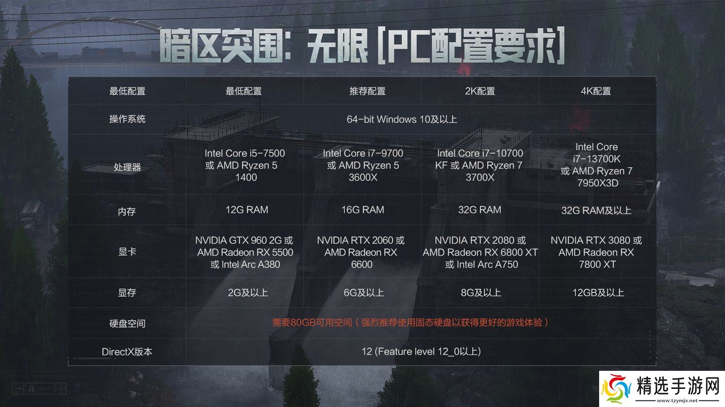 本站附《暗区突围:无限》PC 最低配置需求如下: