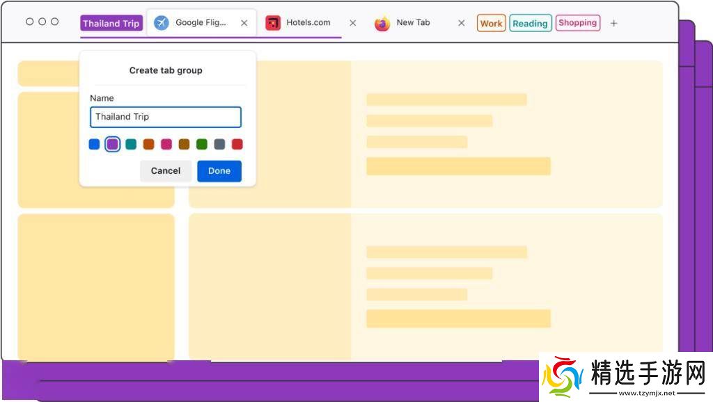 用户不仅能够自由地将标签归类到不同的群组中,还能为每个群组赋予个性化的名称和颜色,以便快速识别和区分。标签组列表被巧妙地安置在Firefox浏览器顶部菜单的右侧,使得用户能够一目了然地查看和管理所有群组,大大提升了浏览效率。