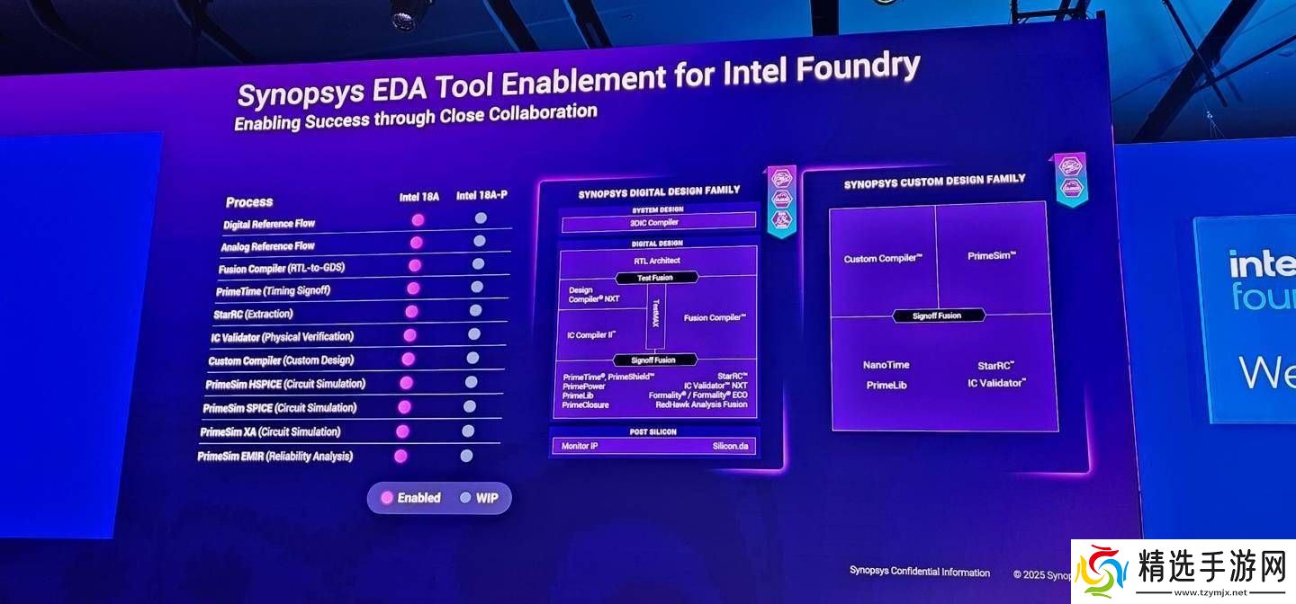 近期,知名分析机构TIRIAS Research在X平台上发布了一系列照片,这些照片摄于2025年英特尔代工大会的活动现场,揭示了EDA与IP领域的领军企业Synopsys新思科技与英特尔之间的深度合作。据悉,Synopsys将为英特尔的18A及18A-P节点提供全面的技术支持。