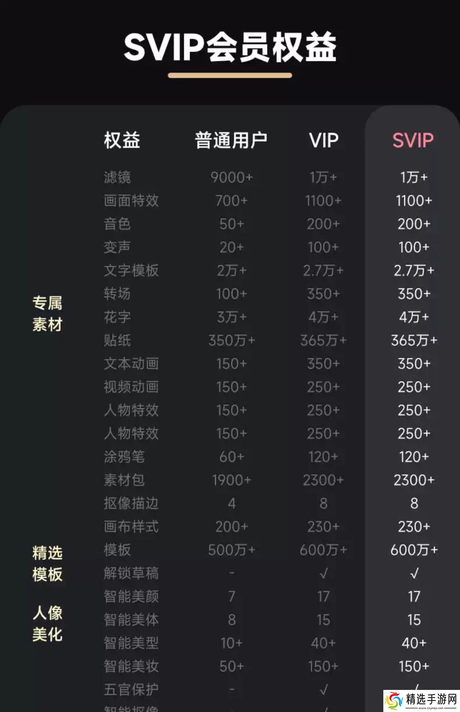 权益方面,目前 SVIP 已知权益包括模板素材、AI 功能、1TB 云空间、专属客服通道等,而且移动 App 与 PC 端权益通用(VIP 仅限 App)。