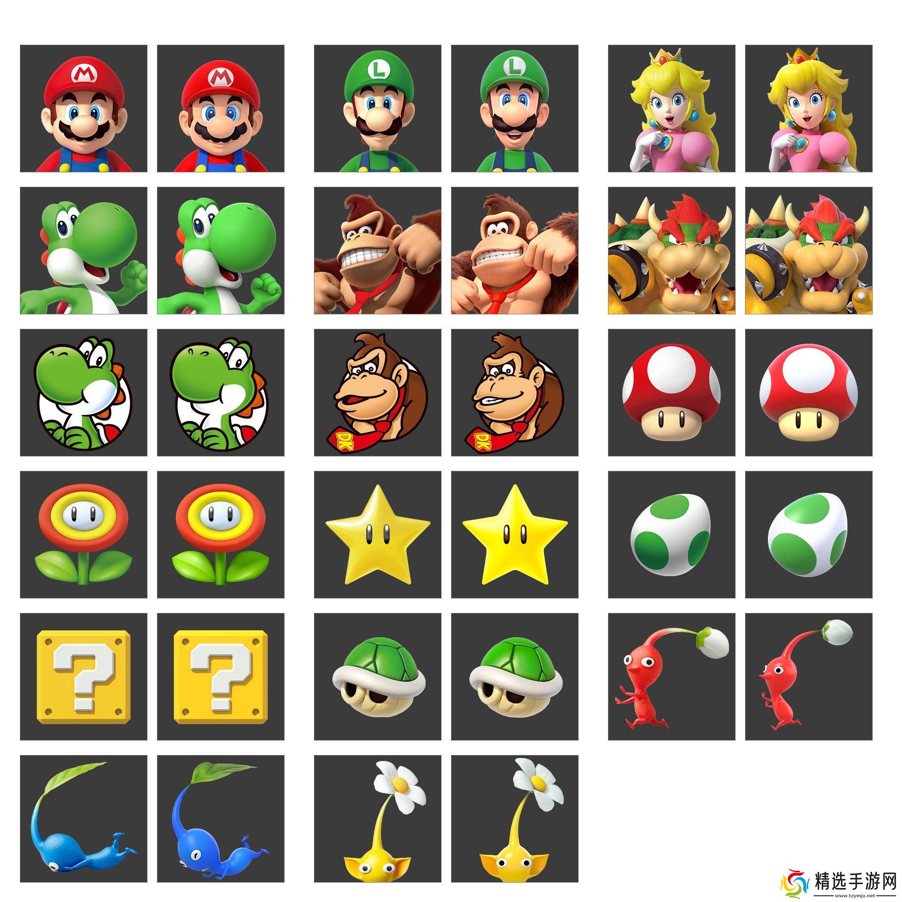 马力欧、路易吉、碧姬公主、酷霸王和咚奇刚的 3D 风格头像的调整主要在于整体饱和度、纹理细节和光影,调整后的头像更加符合现代审美,细节更多。