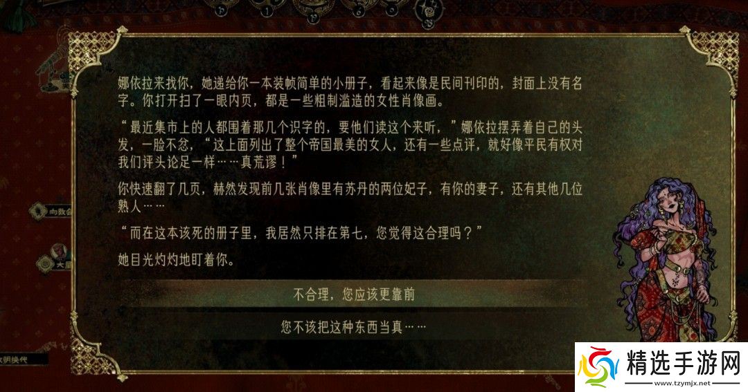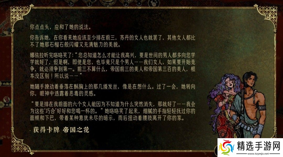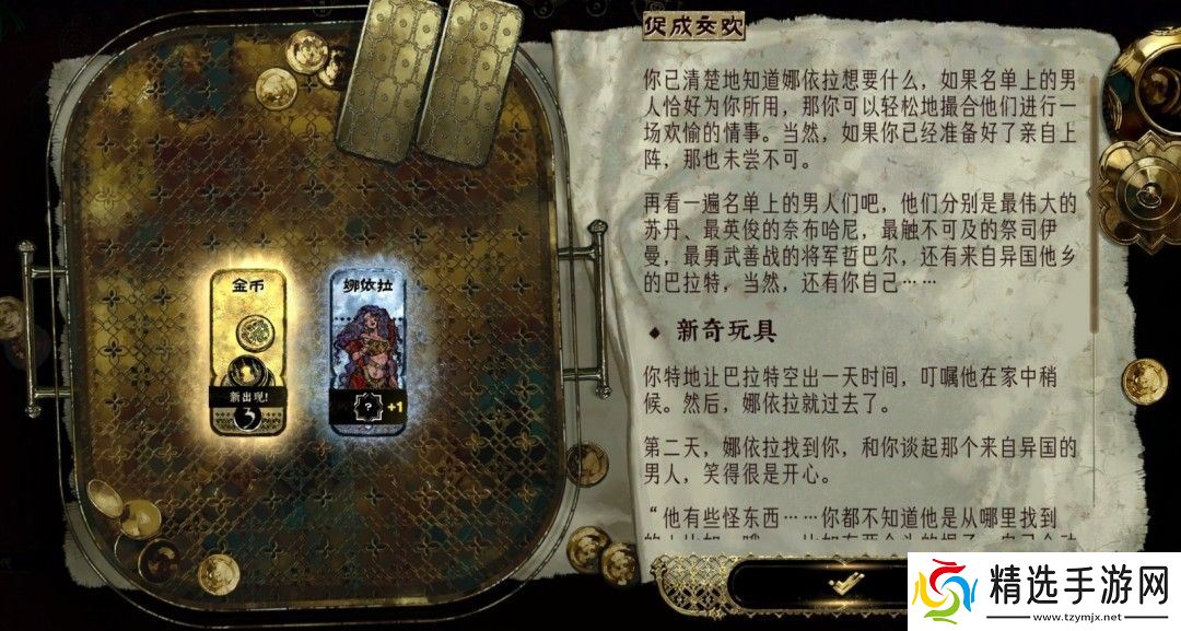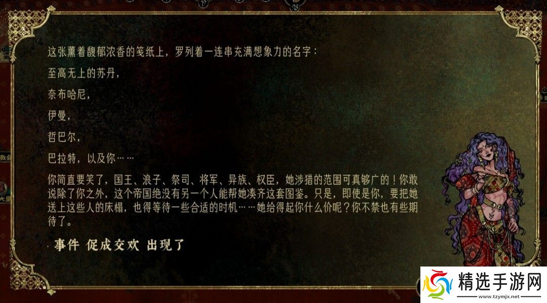 《苏丹的游戏》中有很多比较难的支线,娜依拉的支线就是其一,然而很多玩家不清楚怎么做这个支线,首先一切的开始,权势达到五,开启虚荣作祟事件,使用纵欲卡开启娜依拉线。