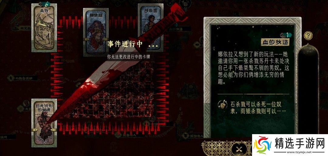 完成上述前置条件后,会触发弑夫事件,在事件中使用杀戮卡杀掉娜依拉的丈夫