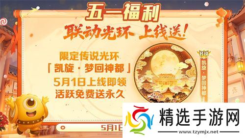 五一期间登录游戏,即可获得国风重铸版经典凯旋光环「凯旋·梦回神都」,以盛唐神都为灵感,将千年宫阙的恢弘与孔明灯的浪漫流光凝练于光环之中。金线勾勒的飞檐斗拱、琉璃溢彩的灯火轨迹,每一步移动皆如盛世画卷徐徐展开。
