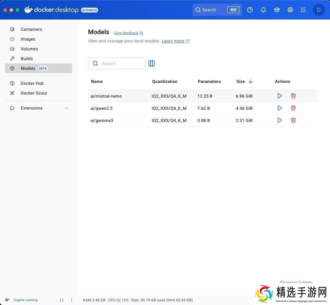 Model Runner现已成为Docker Compose文件和Testcontainers库的核心组件,支持Java和Go语言的初期使用。这意味着团队可以在IDE内编排AI服务与微服务,完成端到端的测试,大大提高了开发效率和团队协作能力。同时,新增的“Models”标签页为用户提供了一个直观的界面,允许他们浏览、启动甚至直接将模型推送到Docker Hub,使得模型管理与镜像管理变得同样便捷。
