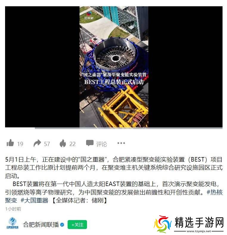 在安徽合肥的聚变堆主机关键系统综合研究设施园区内,一项标志着中国聚变能研究新里程碑的事件于今日盛大举行——BEST装置(紧凑型全超导托卡马克核聚变实验装置)的工程总装工作正式拉开帷幕。新华社对此进行了详尽报道。