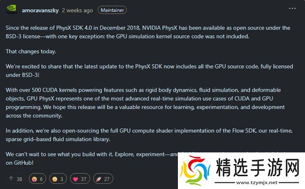 回溯至2018年末,NVIDIA曾公开了PhysX SDK 4.0的开发包,并依据BSD-3许可协议释放了部分源代码,但最为关键的GPU模拟内核却并未包含在内。这一举措虽然为开发者们打开了一扇窗,但仍有局限。