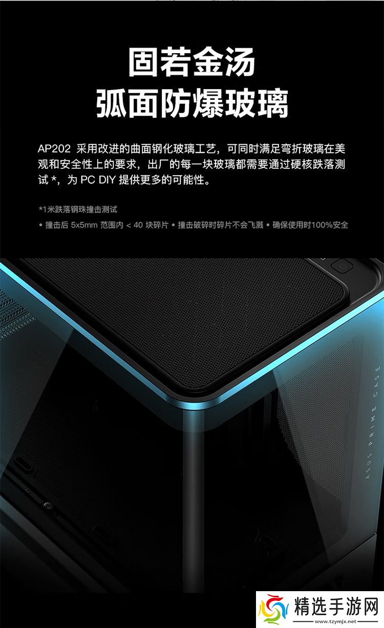 AP202 左前两面配备一块防爆曲面钢化玻璃面板,采用安全导轨 + 球形卡扣的安装系统,支持面板免工具拆卸,减少了装机过程中的意外风险。