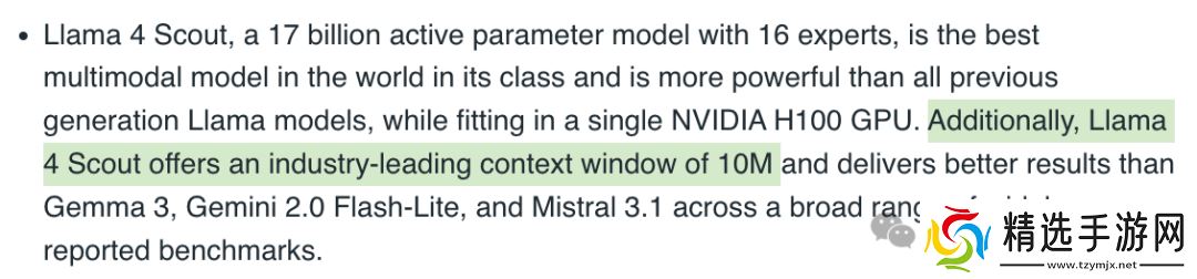Llama 4 Scout,16 位专家的 170 亿激活参数的多模态模型,单个 H100 GPU 可运行,同类 SOTA,并拥有 10M 上下文窗口。