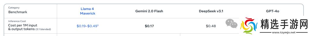 系列超大杯 Llama 4 Maverick,不仅超越了同类型号其它模型,价格还非常之美丽。