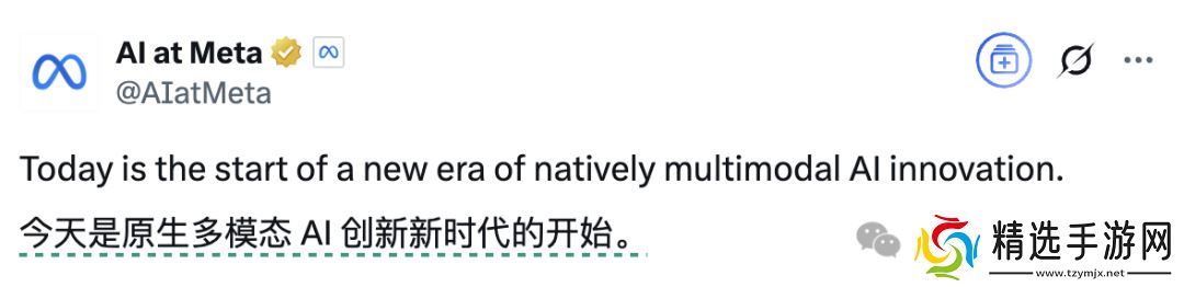 Meta 官推激情表示,这些 Llama 4 模型标志着 Llama 生态系统新时代 —— 原生多模态 AI 创新的开始。