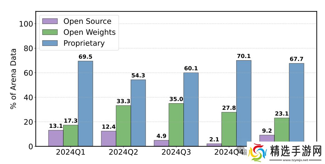 第二,数据访问不平等。专有模型获得的用户反馈数据显著多于开源模型。