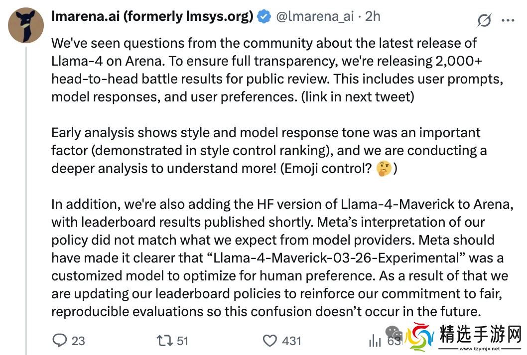 对于最新质疑,大模型竞技场官方 Lmrena.ai 已经给出回应: