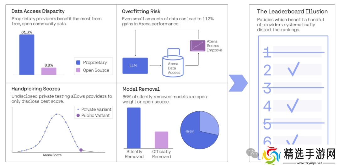 它指出,如今被视为 LLM 领域首选排行榜的 Chatbot Arena,存在诸多系统问题。比如: